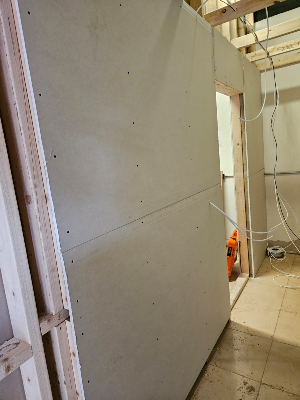 • Stud partitions and slab walling with internal mesh, skimmed finish
